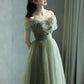 Green beautiful charming floral applique tulle long formal prom dress, evening dress, party dress gh2530