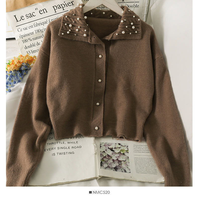 Beaded Lapel single breasted slim cardigan sweater 2034