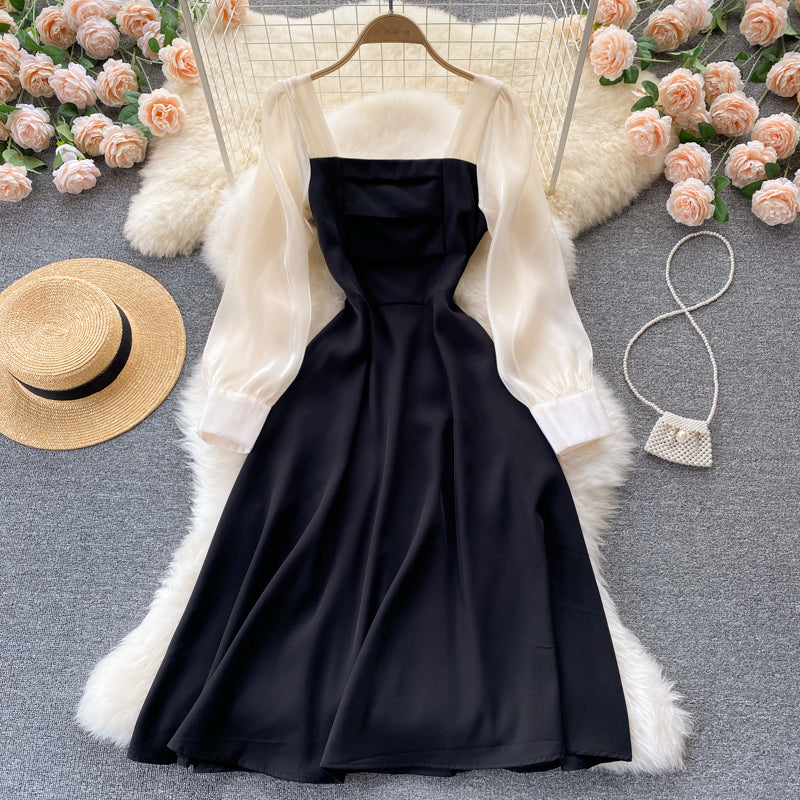 Black A Line Long Sleeve Dress Fashion Dress 10673