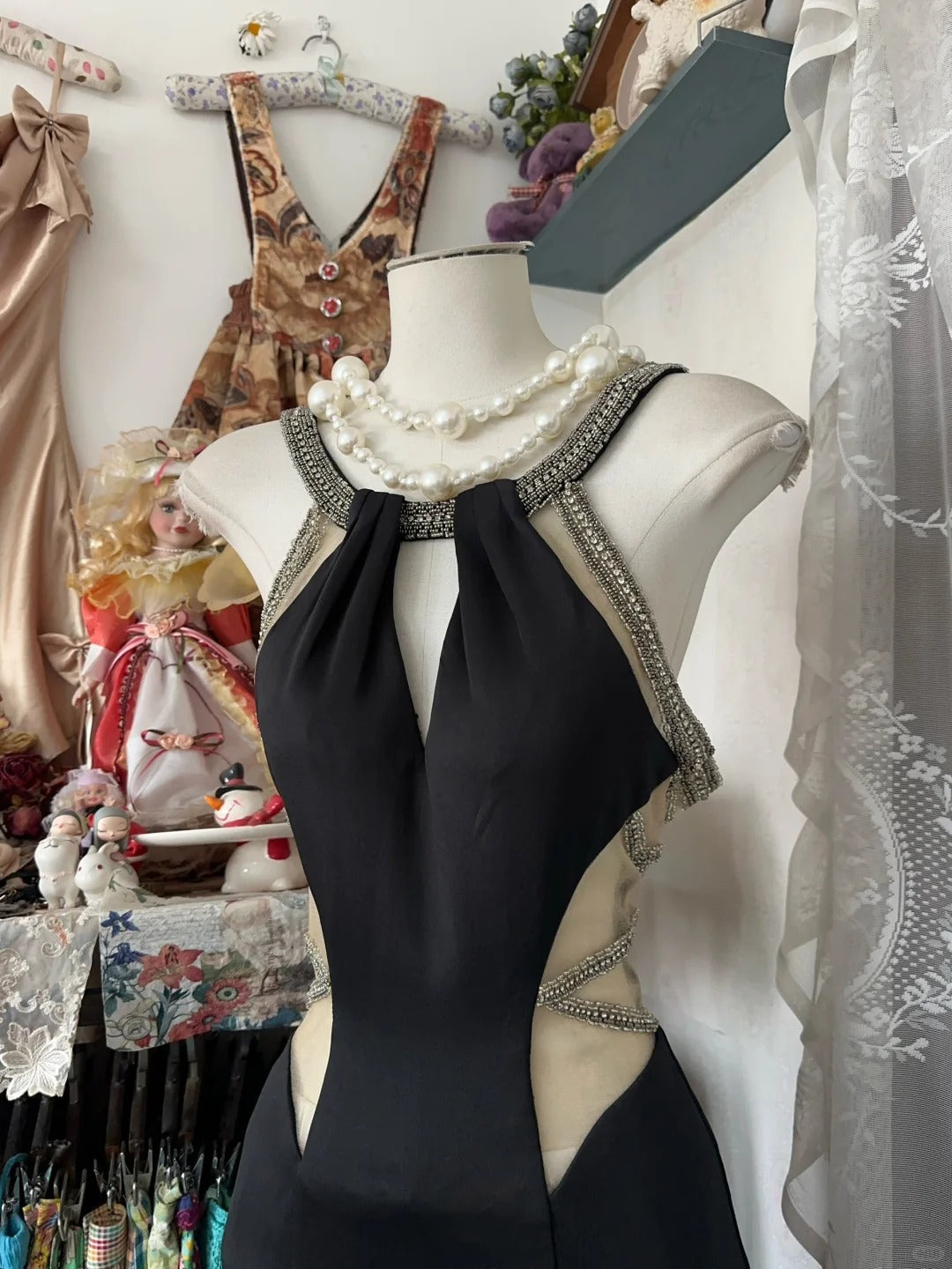 Black Mermaid Beautiful Long Satin Sexy Hollow Ball Gown Evening Dress Party Dress gh4395