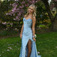 Blue Fashion Elegant Floral Long Satin Slit Prom Dress Evening Dress Wedding Guest Party Dress Graduation Dress gh3986