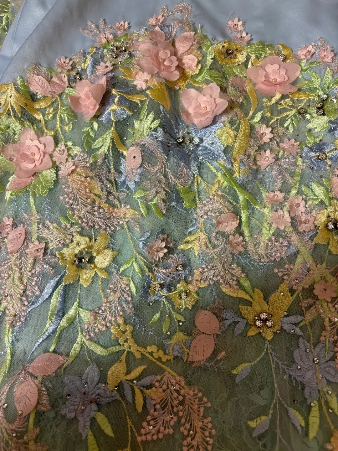 Blue floral elegant long tulle trailing ball gown evening dress gh4384