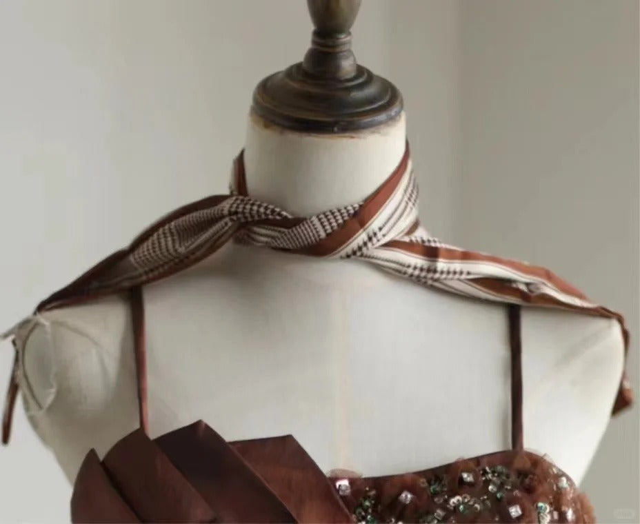 Brown retro palace puff short homecoming dress princess dress taffeta satin handmade beading adult ceremony birthday party gh4374