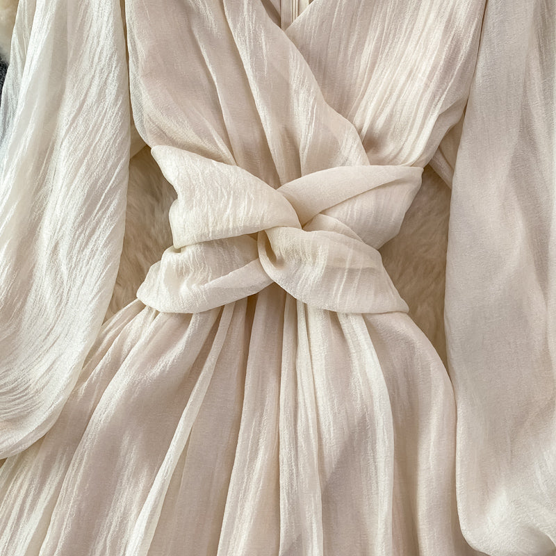 Champagne V Neck Long Sleeve Dress Fashion Dress 10894