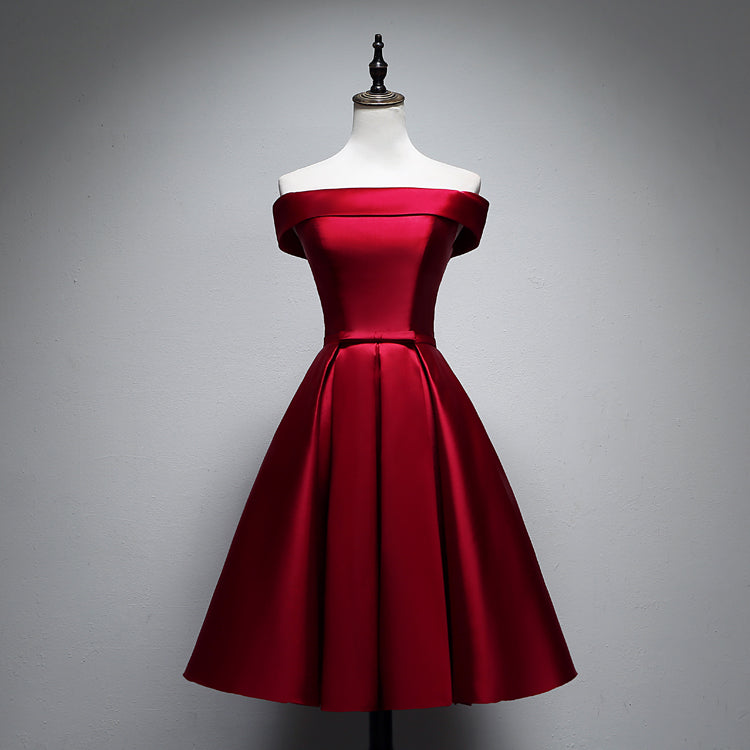Red/Pink/Yellow/Blue Cute Off Shoulder Short Elegant Satin Prom Dress Homecoming Dress Party Dress 8211