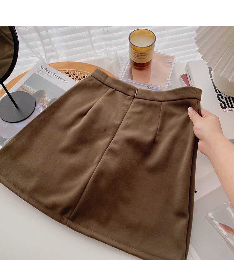 Design sense fashion retro single breasted A-shaped high waist skirt 5526