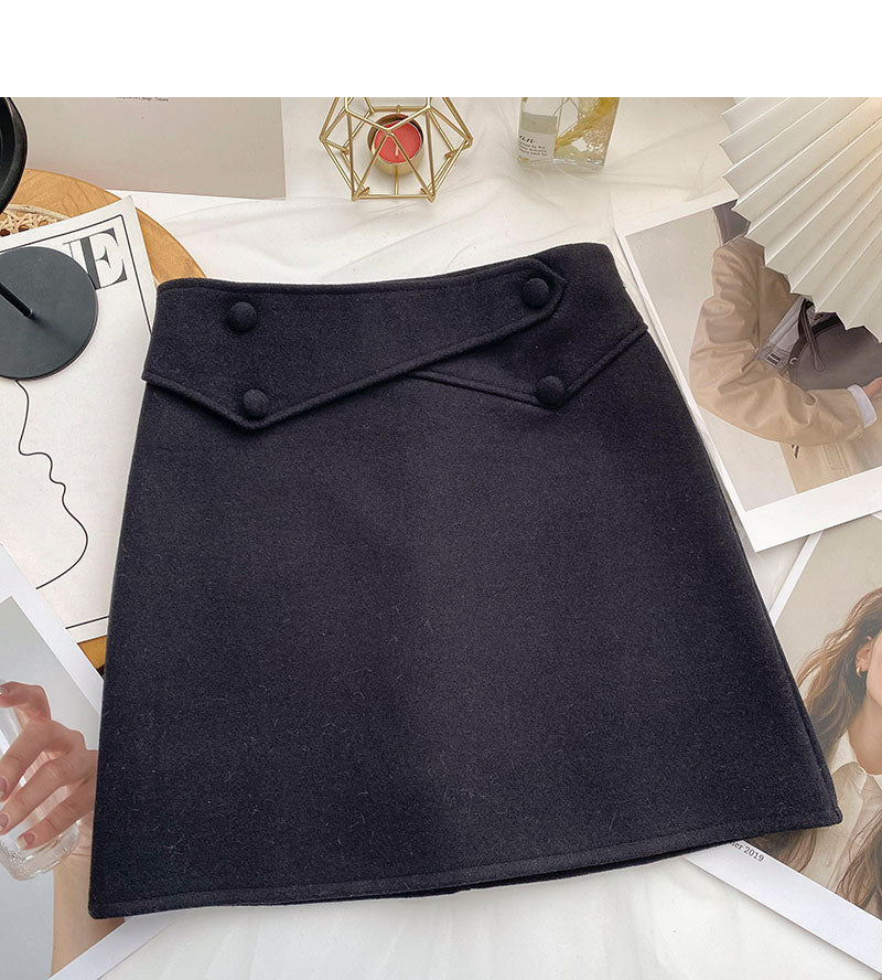 Design sense personalized button high waist slim A-line skirt 5365