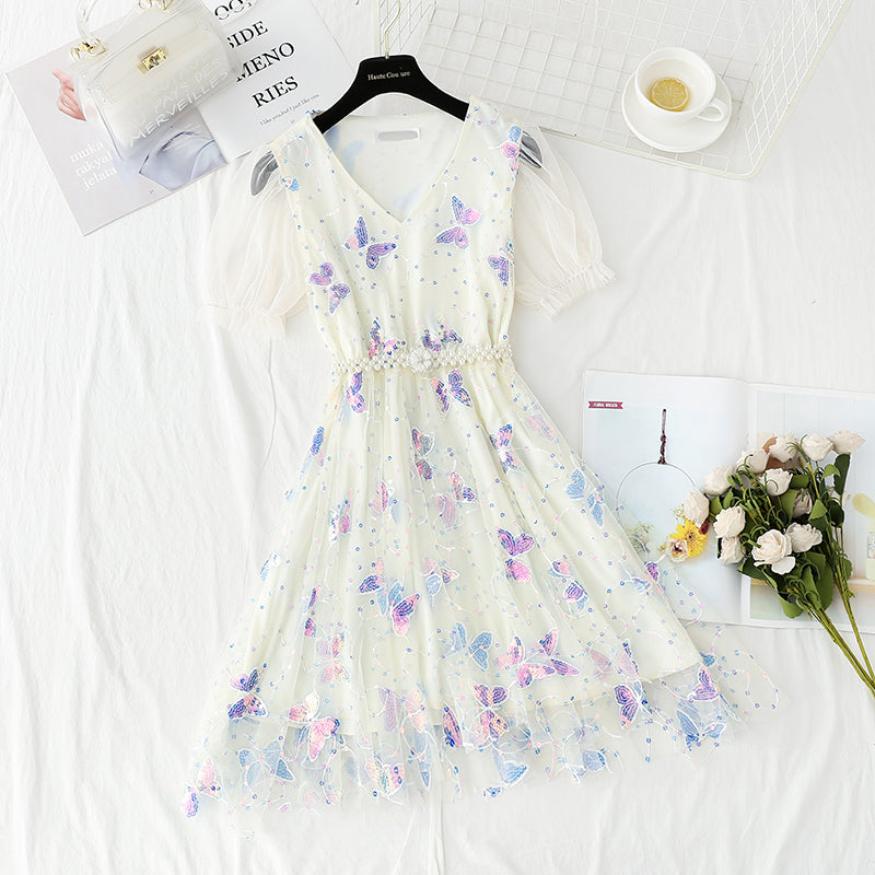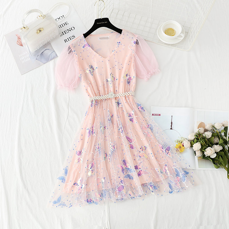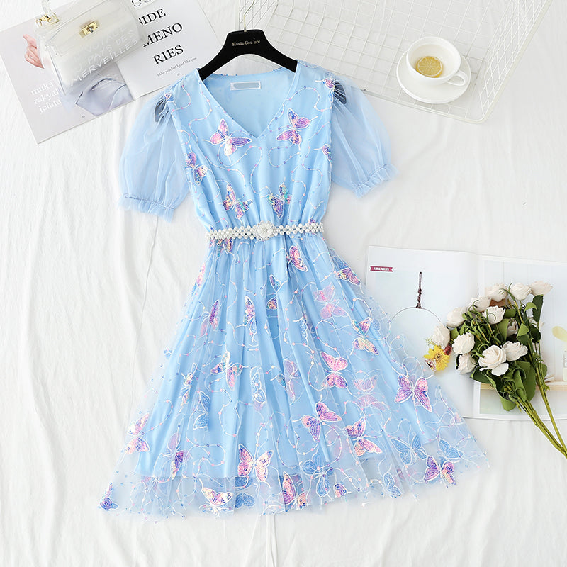 Fairy super fairy lace gauze skirt heavy industry embroidery Sequin 4421