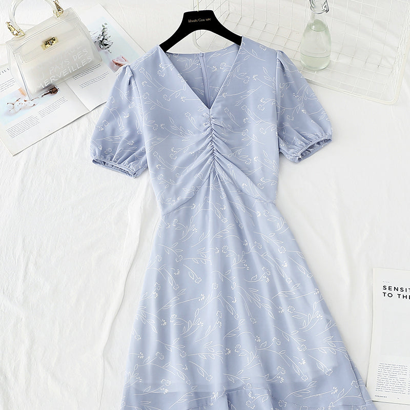 French V-neck slim Chiffon fishtail Ruffle Skirt 4853