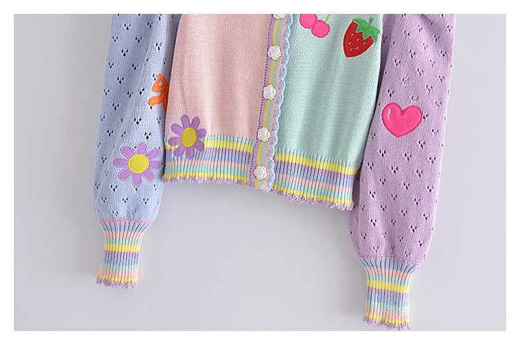 Fruit love embroidered knitted cardigan sweater coat 7310
