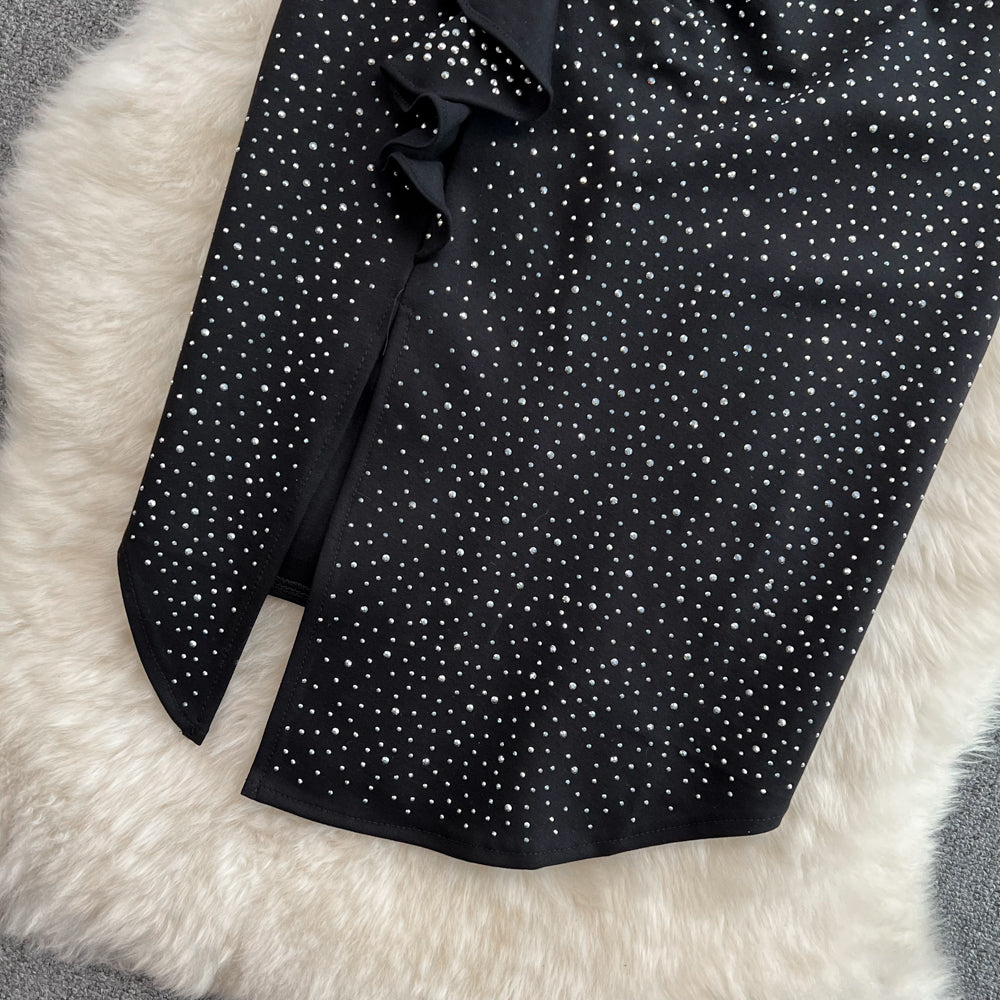 High waist slim diamond ruffled irregular A-line skirt 11277