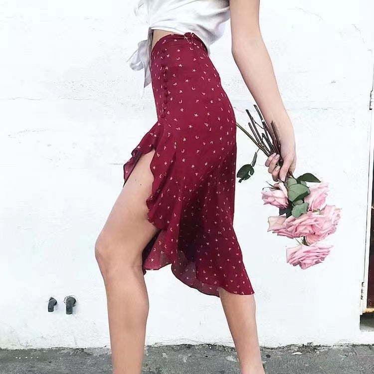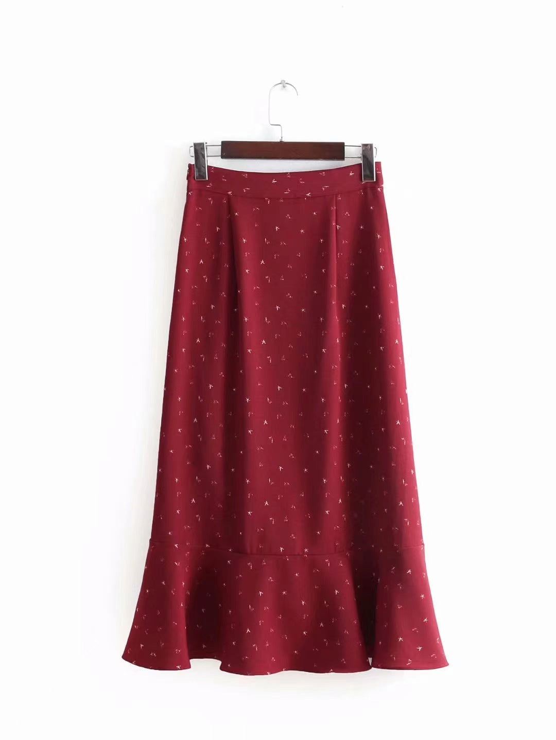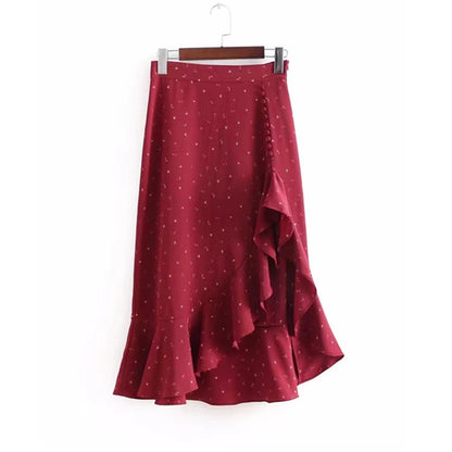 High waisted, looseflouncesprinted irregular MIDI skirt 3716