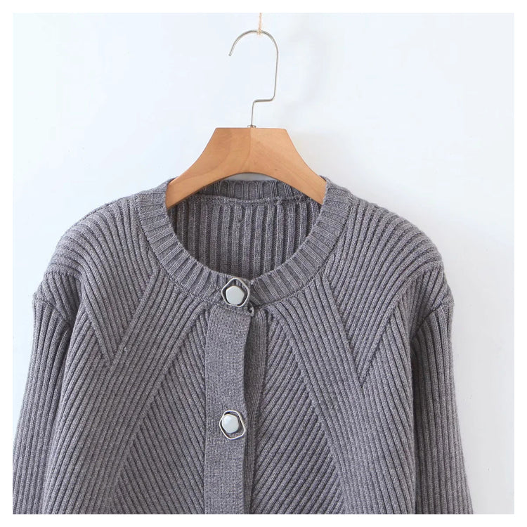 Irregular button round neck long sleeve knitted cardigan sweater 7358