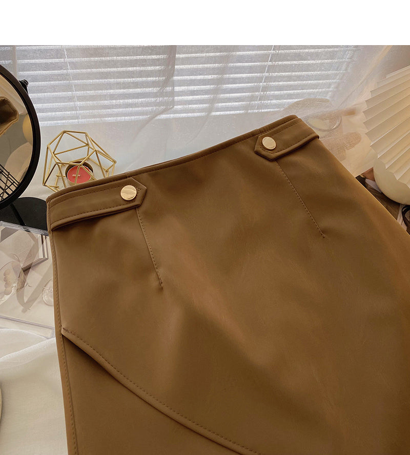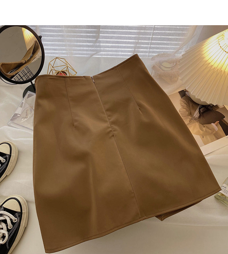 Irregular design, slim hips, high waist A-shaped small leather skirt 5521