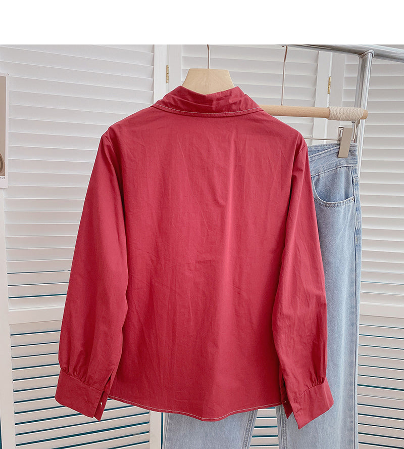 Korean slim retro design open line Lapel top 6383