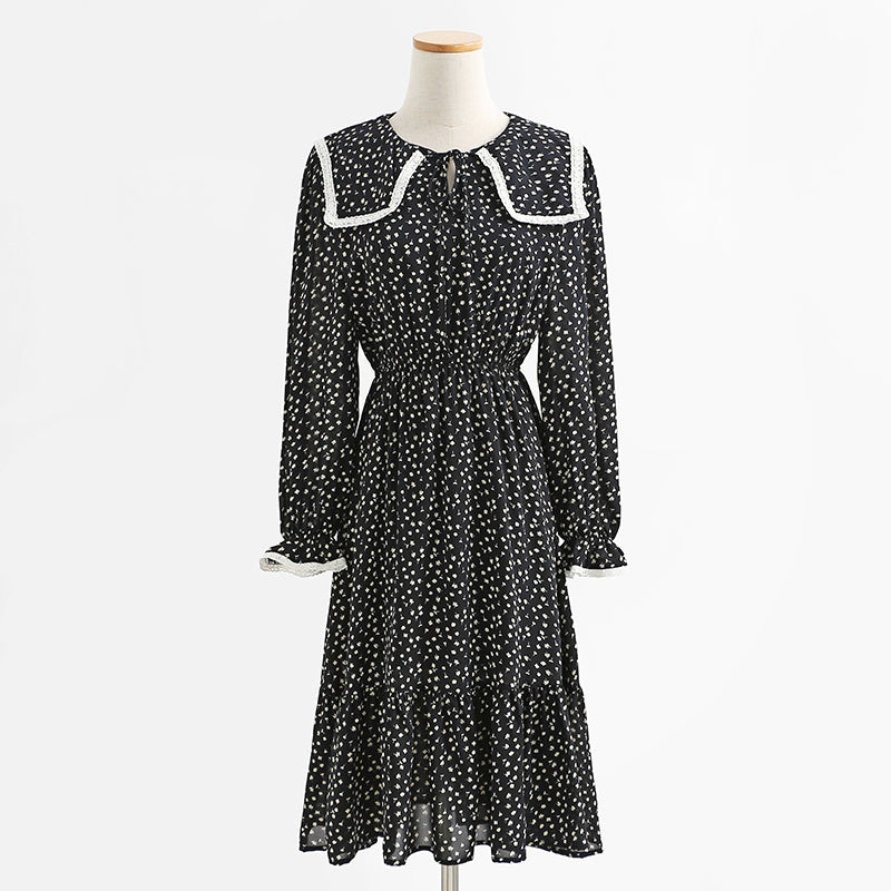 New autumn retro waist slim doll collar coffee floral skirt lace up skirt 2328