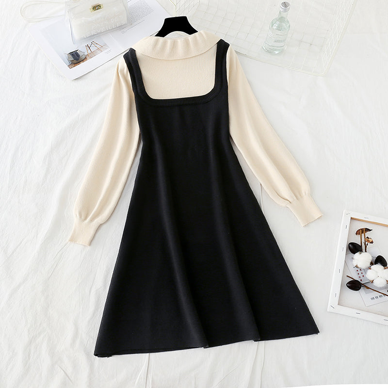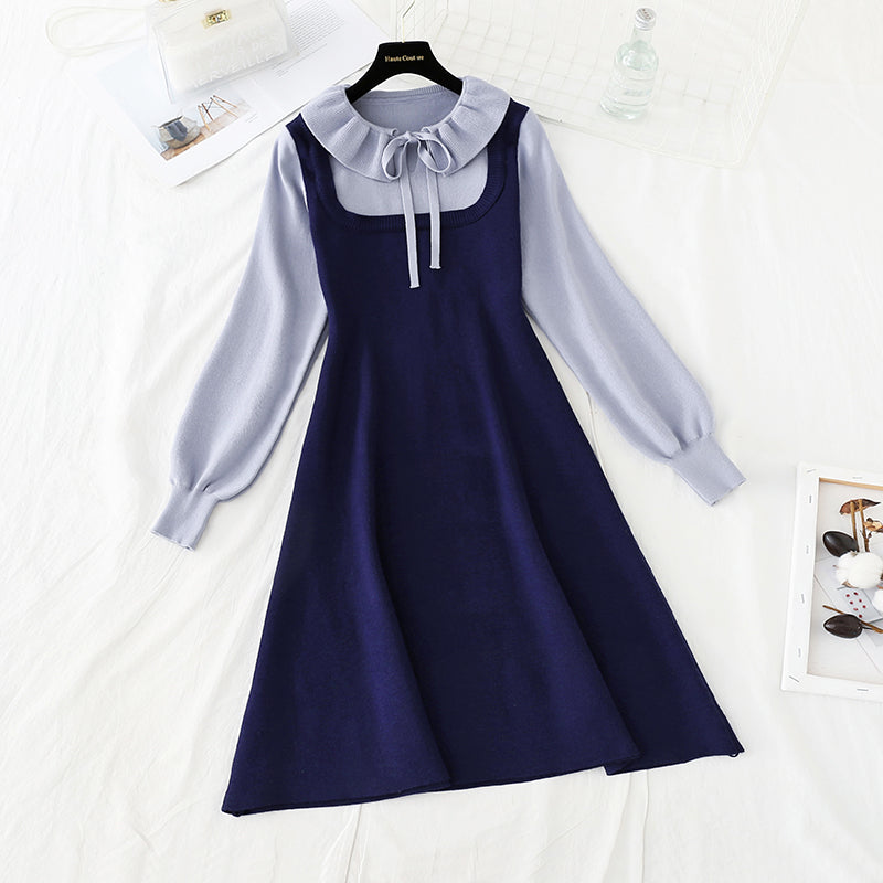 New bottomed skirt lotus leaf collar French retro Hepburn tea break 4772
