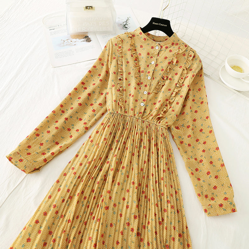 New French Floral Chiffon pleated long skirt fairy super fairy series 4731
