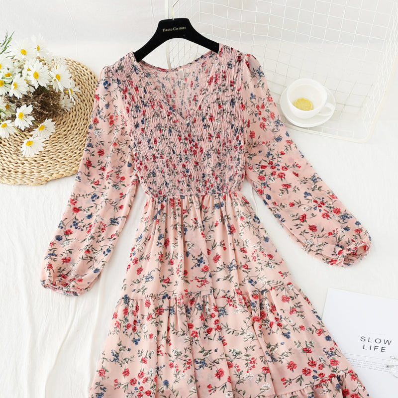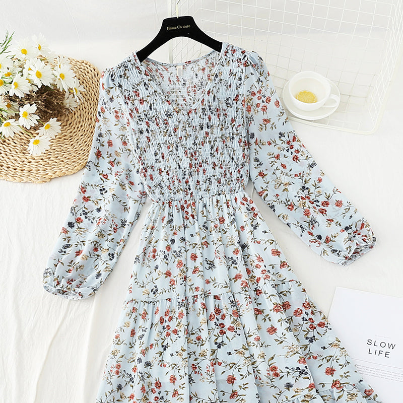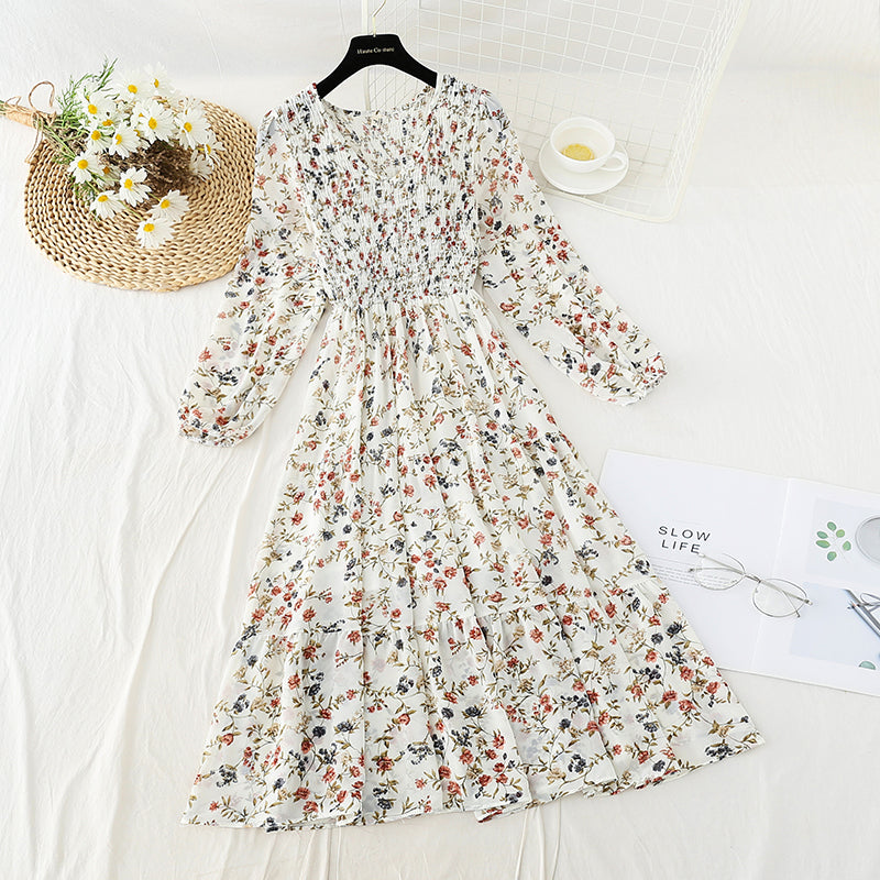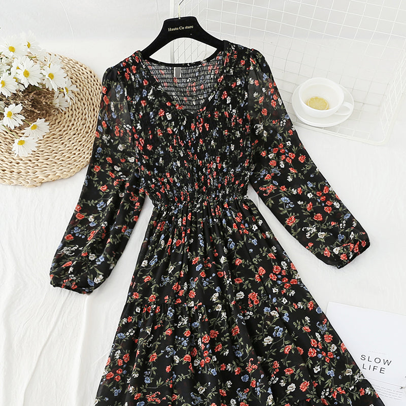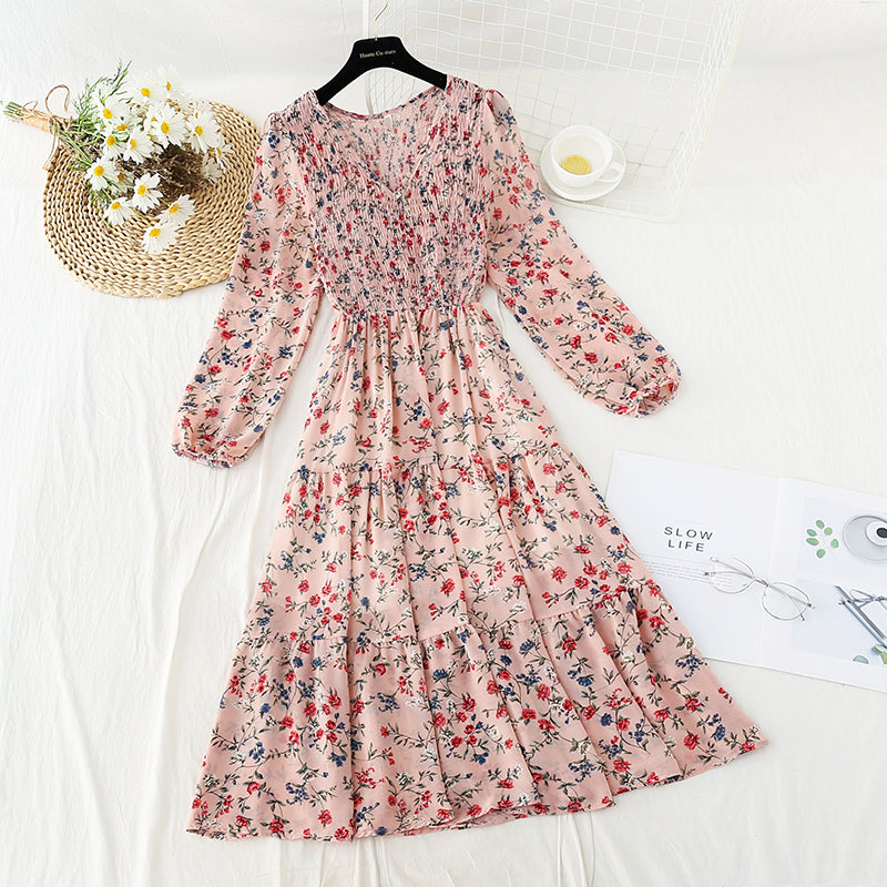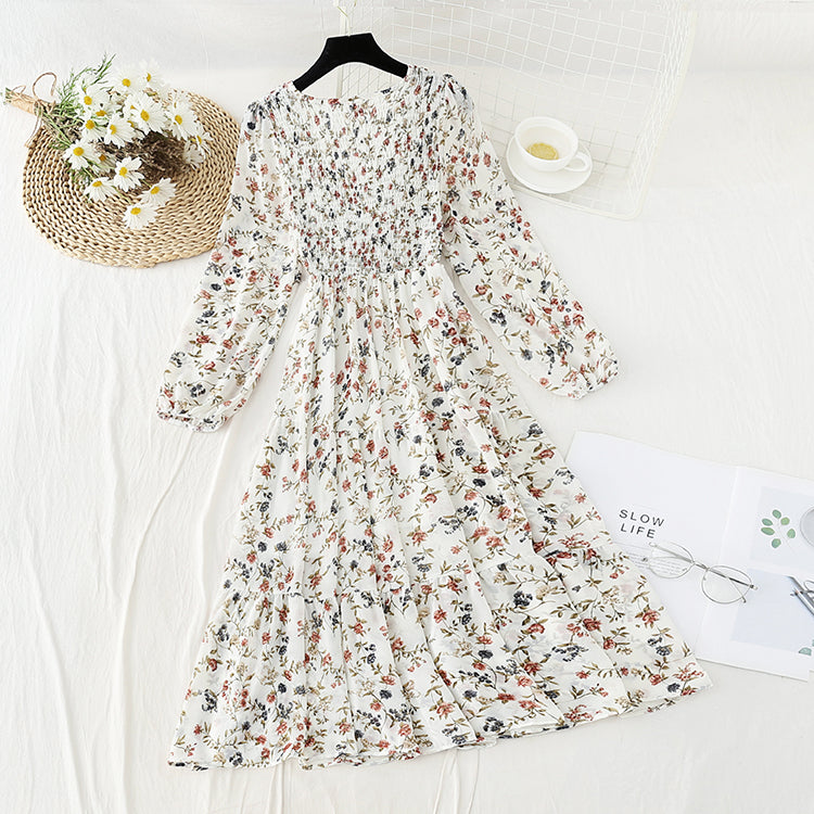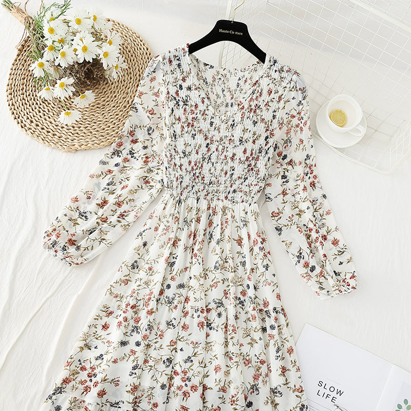 New French minority long skirt with pleated waist and thin A-line skirt 4832