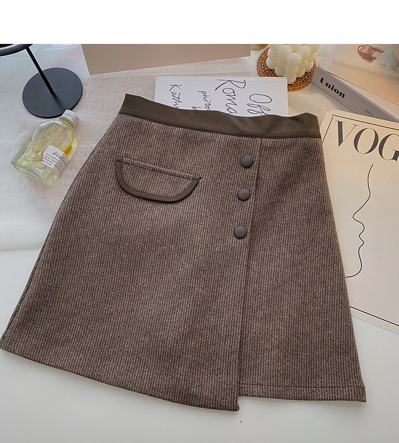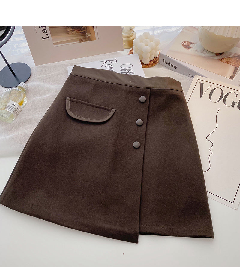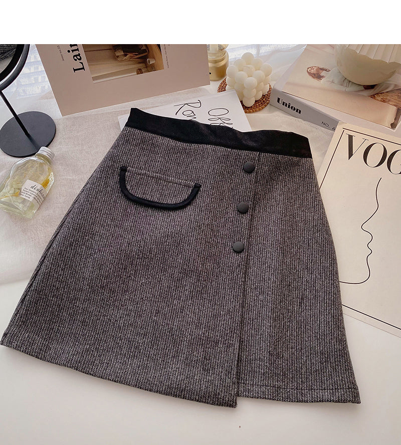 New Korean casual retro design button high waist color blocking a-word skirt 5333