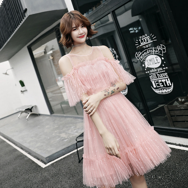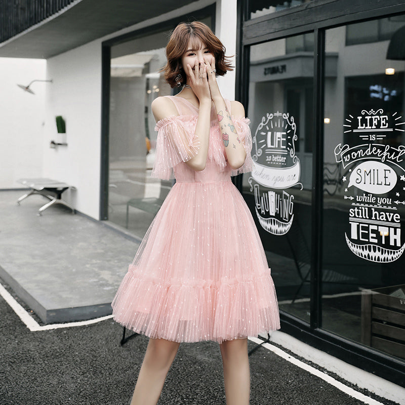 Pink tulle short dress, party dress