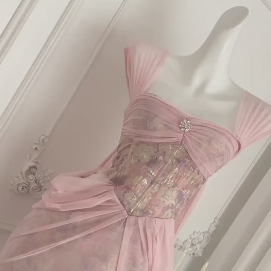 Pink Romantic Floral Short Homecoming Dress Party Dress gh4762