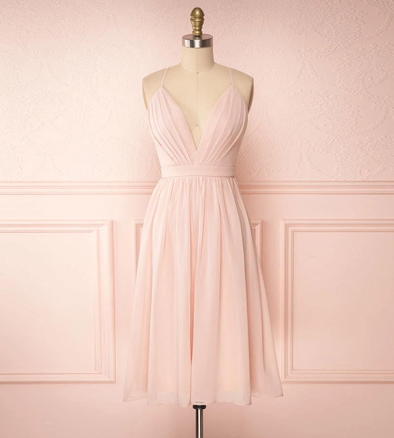 Pink v neck chiffon short prom dress