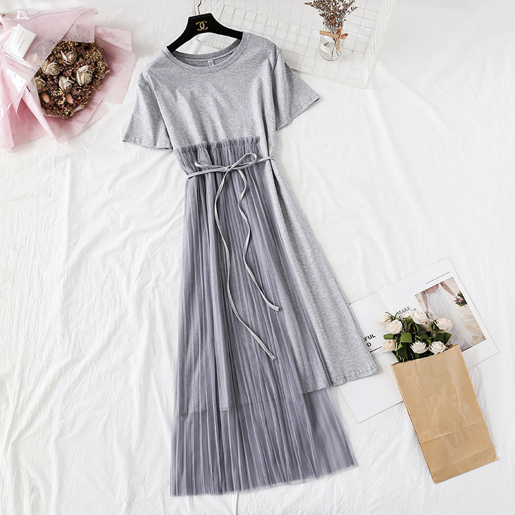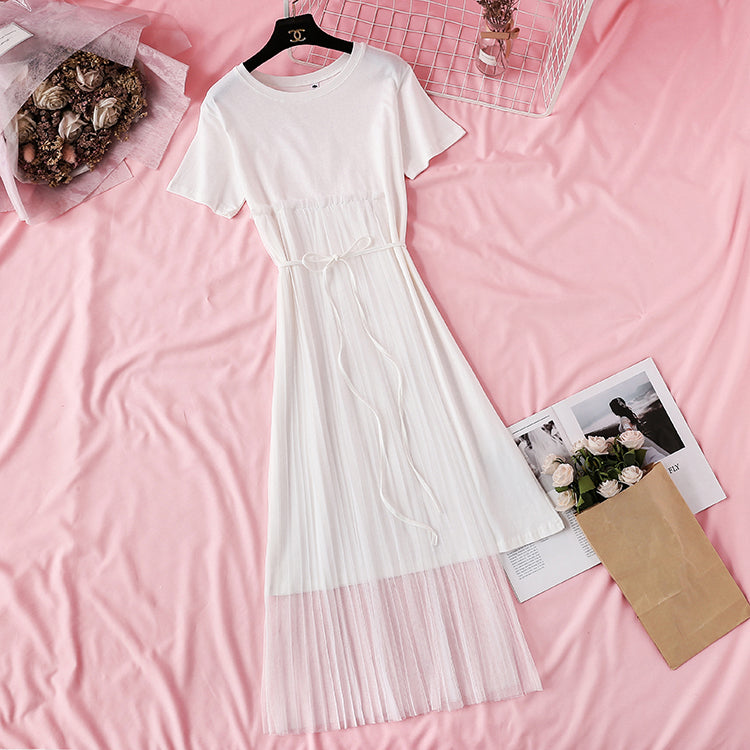 Pleated mesh irregular personality T-shirt skirt 4352