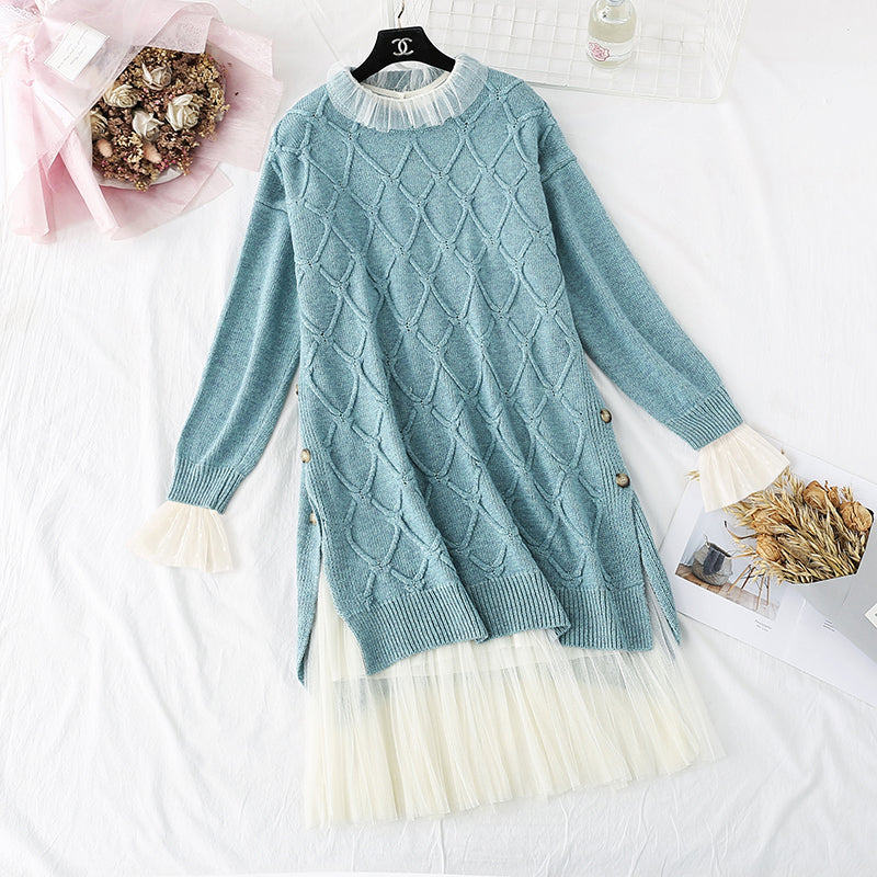 Retro Pullover Sweater + mesh bottomed skirt two-piece suit skirt 3957