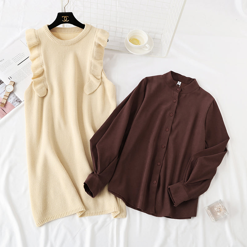 Slim sweater knitted vest vest with shirt skirt 4450