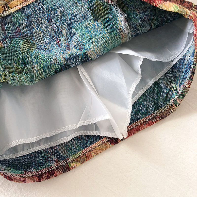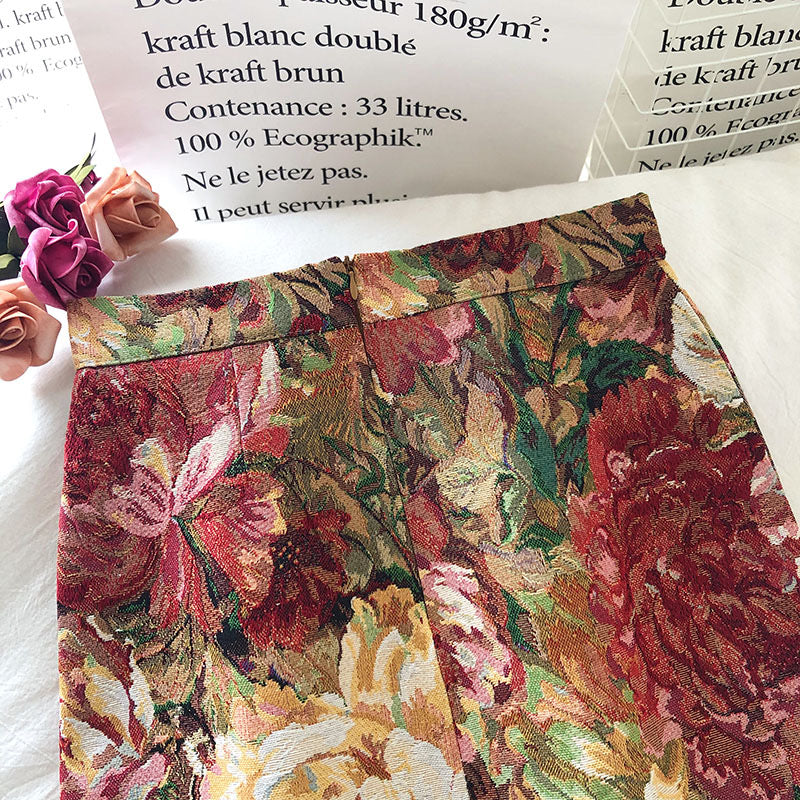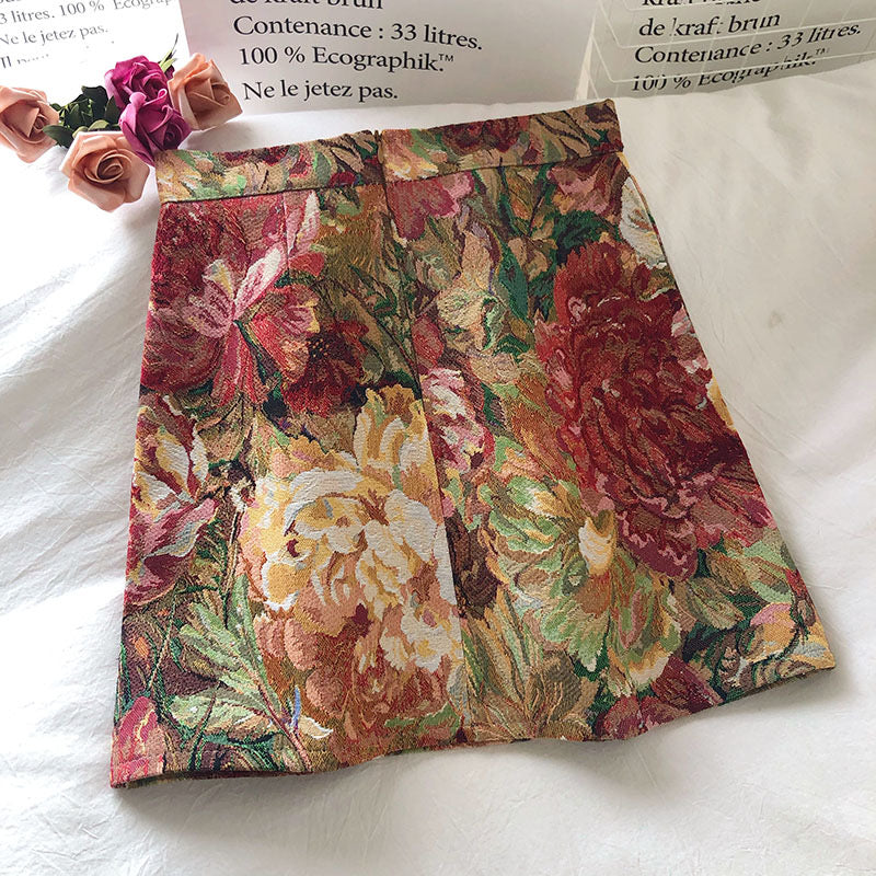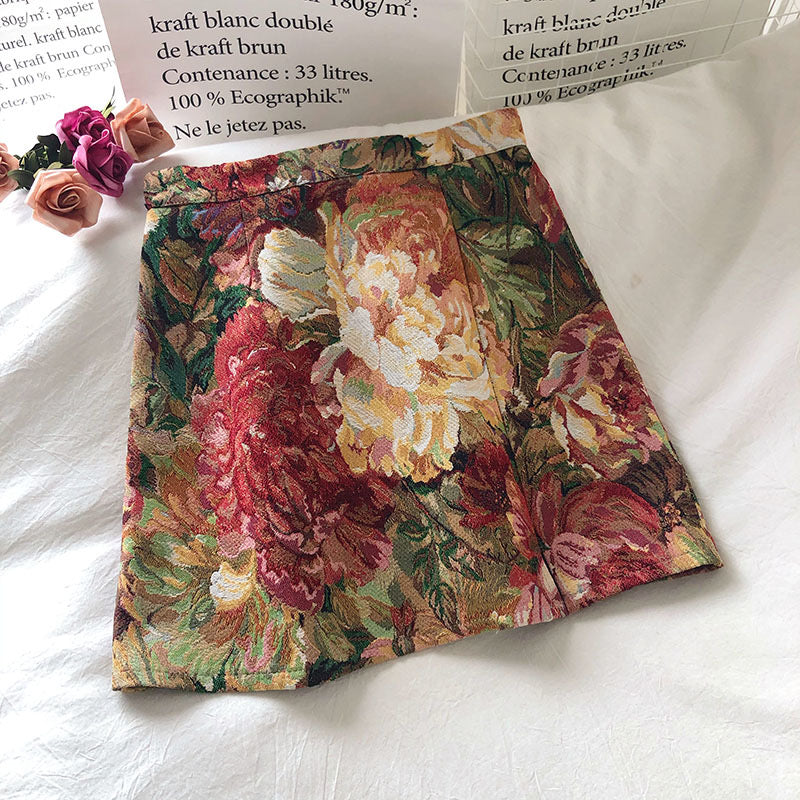 Spring and Autumn, elegant oil painting painted flowers, high-waisted skirts, A line buttocks skirt 3664