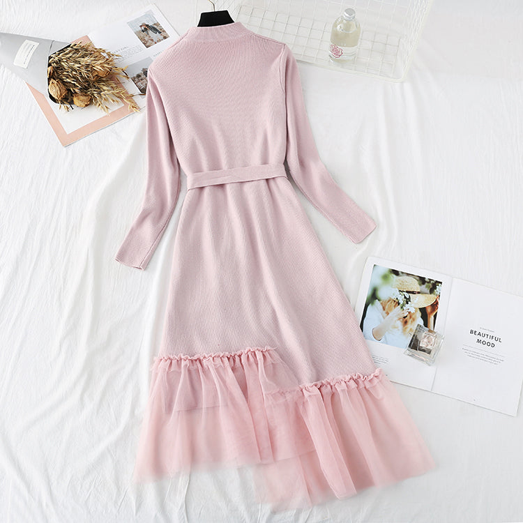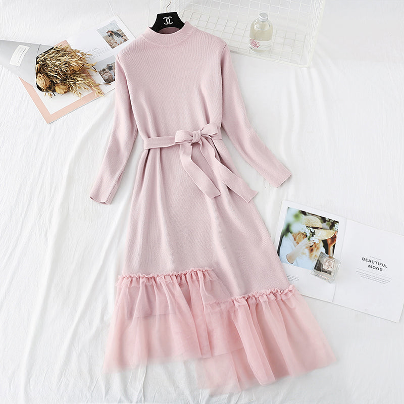 Sweater over the knee, Royal sister style bottom temperament long skirt 3794