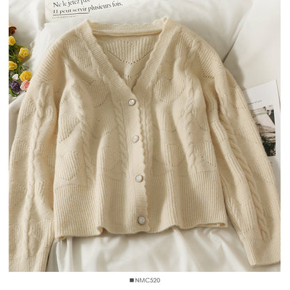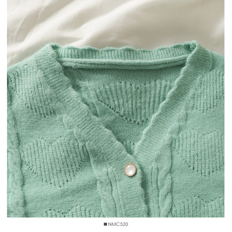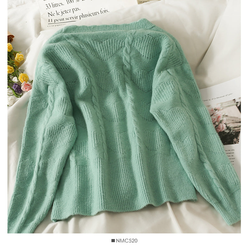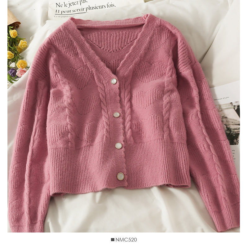 Sweater women's new wave edge V-neck single breasted cardigan 1873