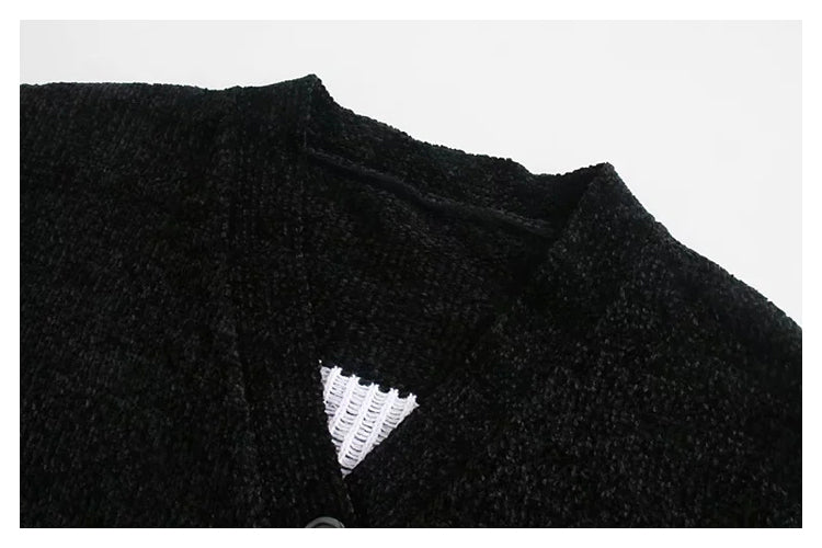 V-neck Lantern Sleeve Button back smiling face loose knit coat 7483