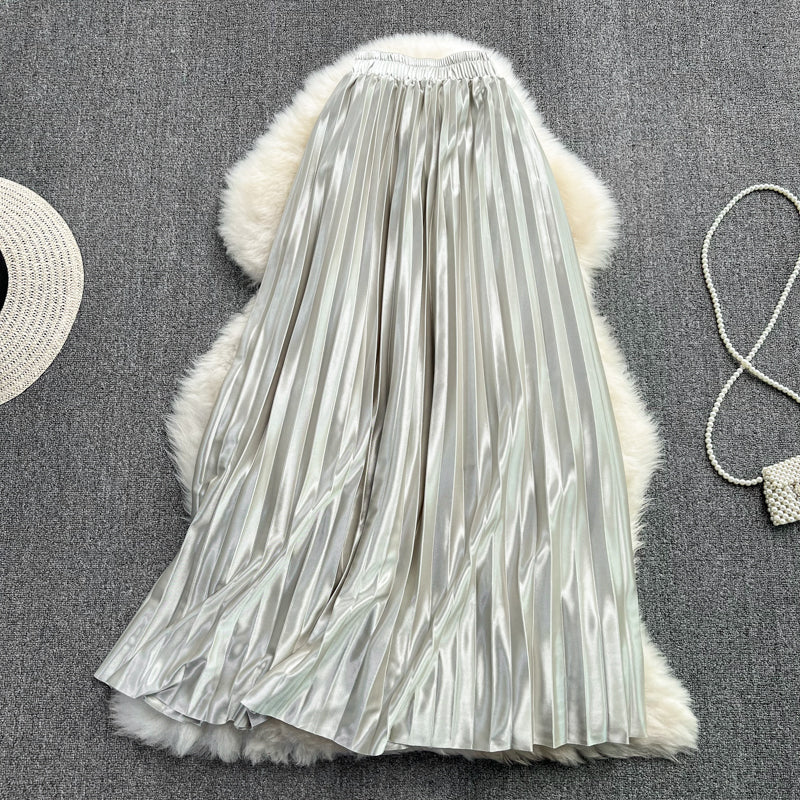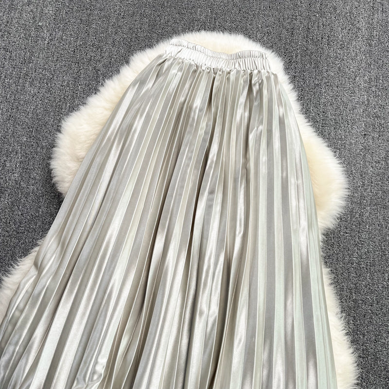 Versatile acetate SATIN HIGH WAIST slim pleated skirt 11296