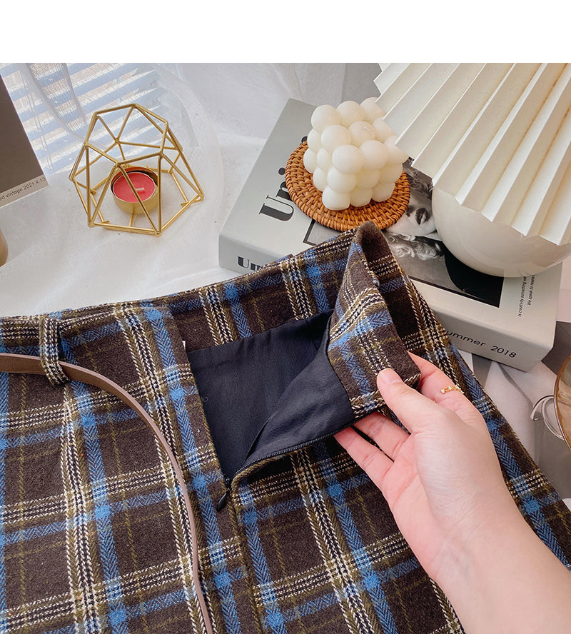 Versatile retro fashion checkered high waist A-line skirt 5596