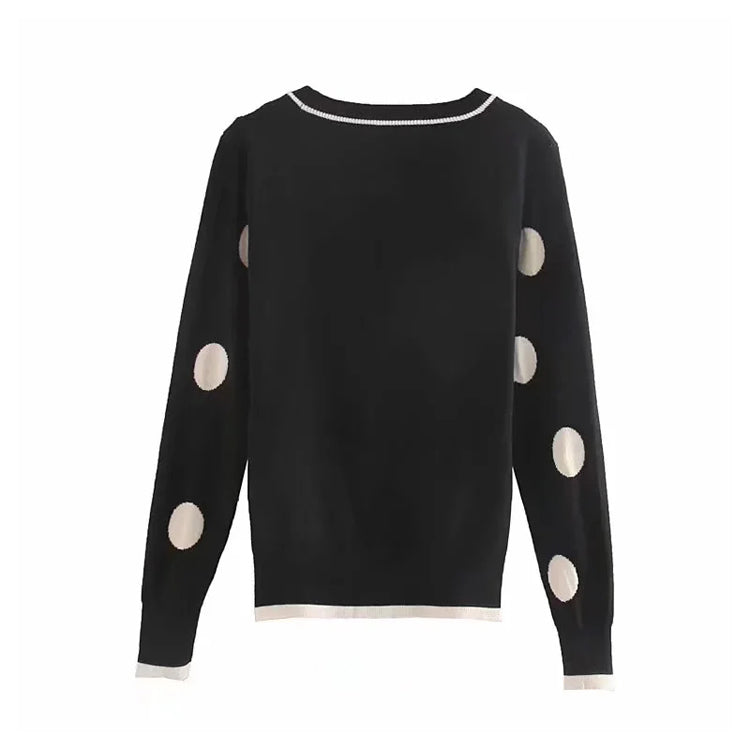 Vintage dot black and white contrast V-Neck Sweater Cardigan Jacket 7419