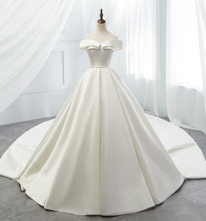 White satin long A line ball gown dress formal dress